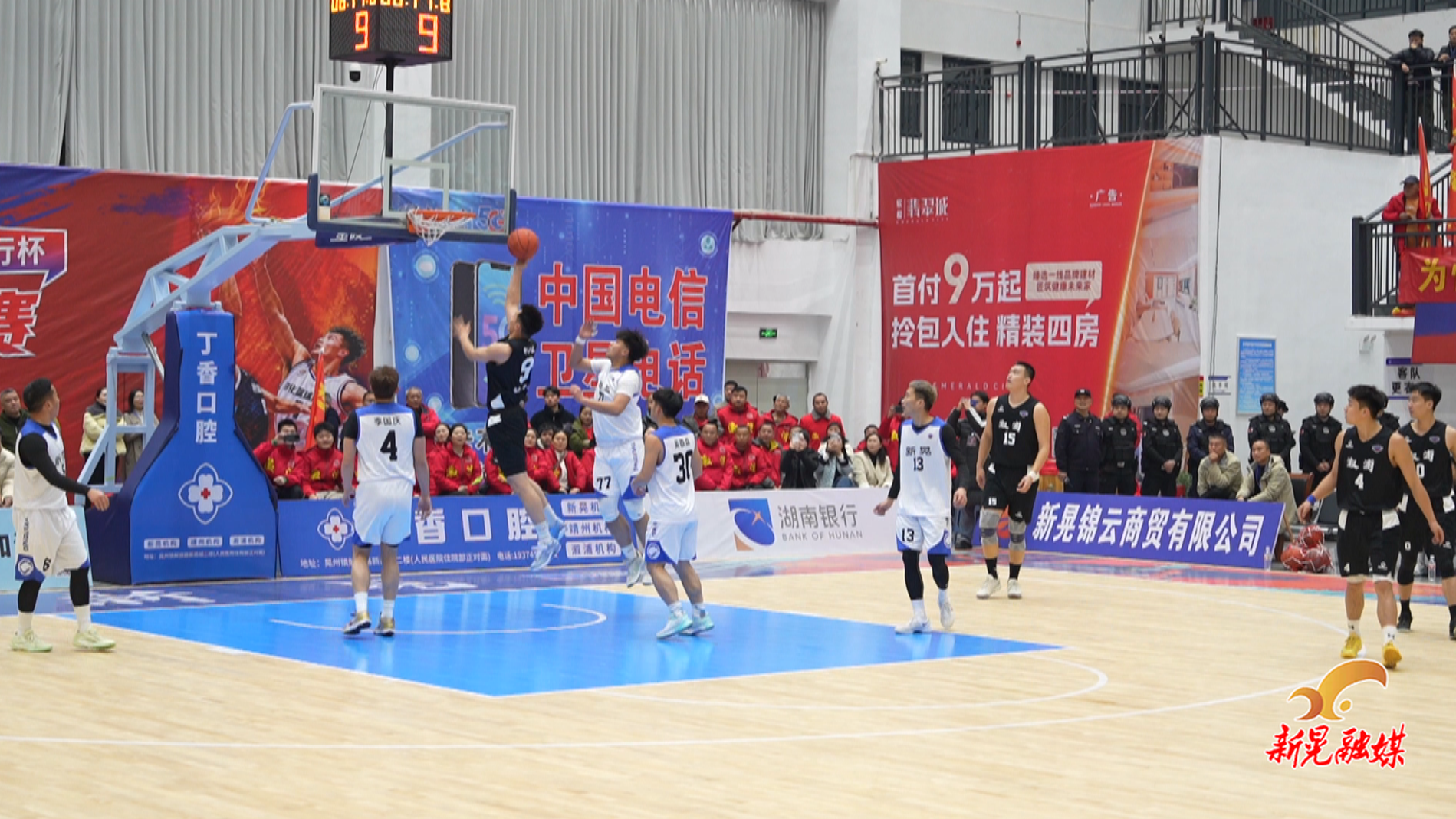 新晃融媒1月24日讯(记者:熊玉萍)1月24日晚,“湖南银行杯”怀化市首届篮球联赛(怀BA)新晃主场对决溆浦队的赛事火热上演。赛场上两队球员全力拼抢,最终新晃队以90:103惜败溆浦队,用热血拼搏诠释体育精神,赢得全场球迷喝彩。