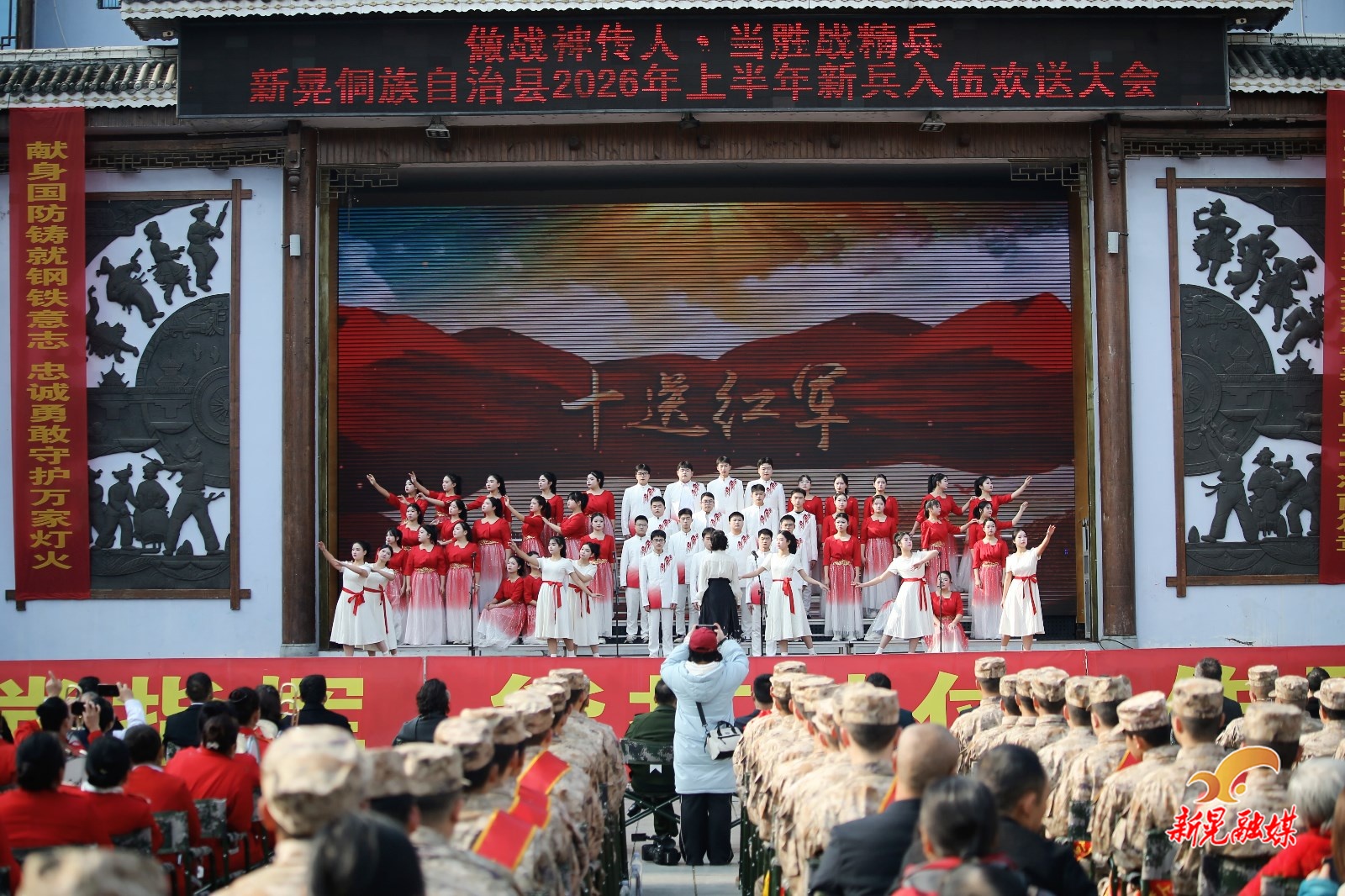 新晃融媒3月15日讯(通讯员:杨凌云)3月12日,新晃侗族自治县2026年上半年新兵入伍欢送大会隆重举行,新晃一中麒麟合唱团深情献唱《十送红军》,欢送家乡子弟兵。