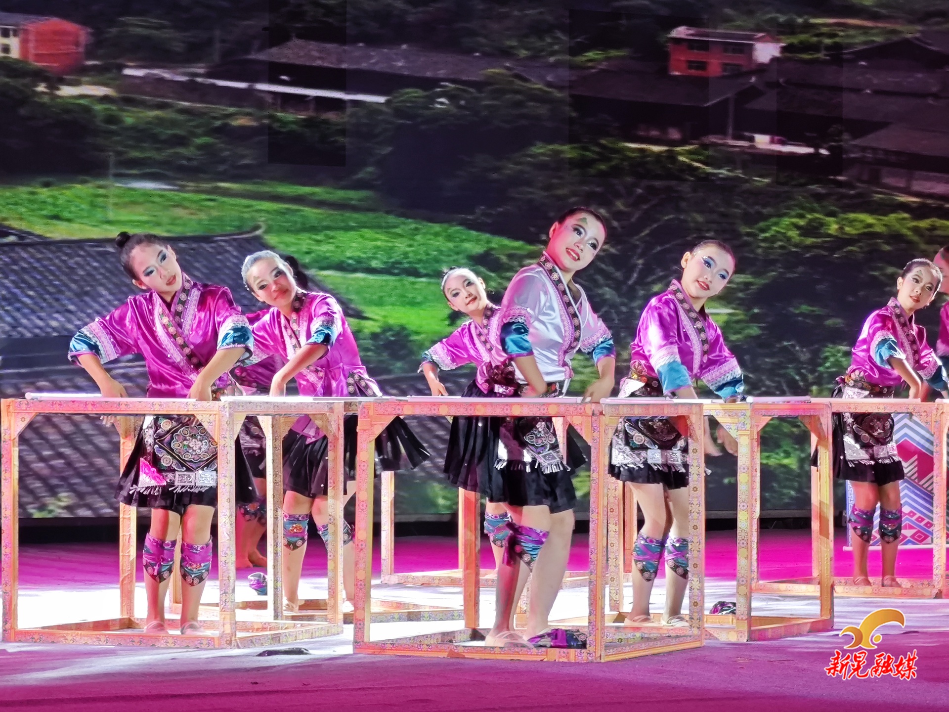 整场演出围绕铸牢中华民族共同体意识,穿插口才、走秀等多种艺术形式,呈现了一场美轮美奂的视听盛宴。节目《一布一生》以苗族蜡染为灵感,舞出非遗的深厚底蕴;《侗听》通过原创口才节目,讲述新晃的文化记忆;《只此青绿》将传世名画《千里江山图》搬上舞台,演绎中华文化的壮美与传承;《嫁娘帕》《陶醉了》《一抹红》《雨祭》《碇步桥》《琵琶夜歌》等节目,分别从婚俗、民俗、自然、情感等角度,展现了各民族文化的多样性与共生共融。