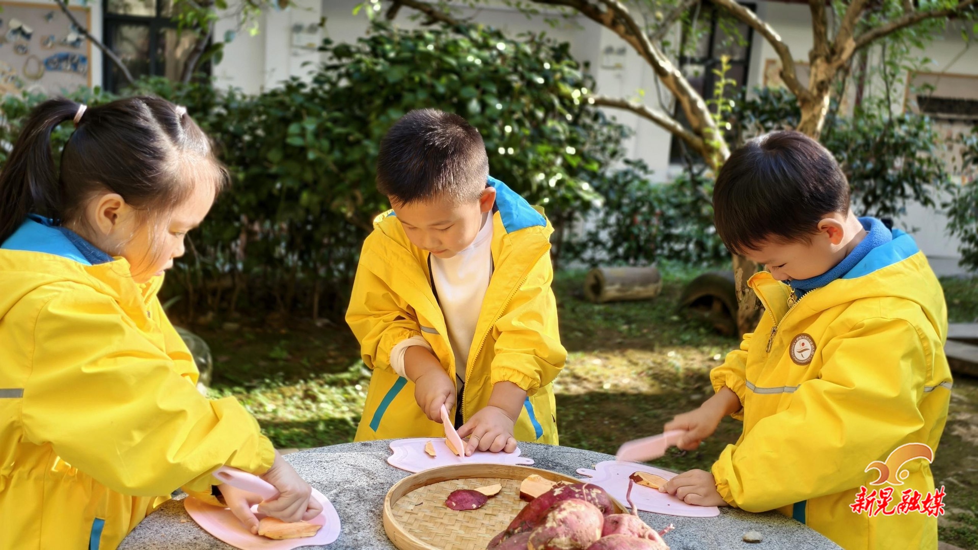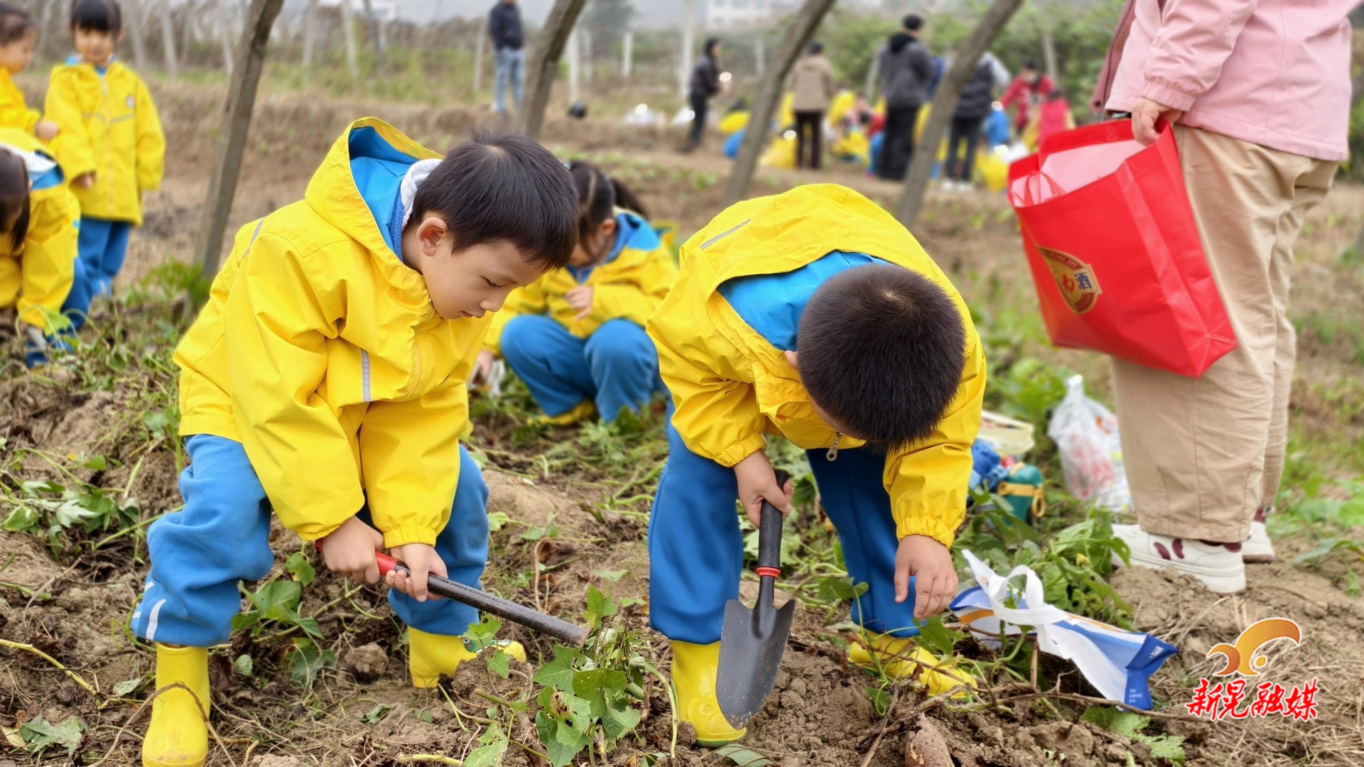 在幼儿园种植基地内,幼儿在老师的带领下有序进行挖红薯体验,感受秋收的乐趣。大家相互协作,将一个个肥硕饱满的红薯挖出来,并在老师的指导下制作红薯干和元气红薯糕,感受手工乐趣,享受秋日美食。