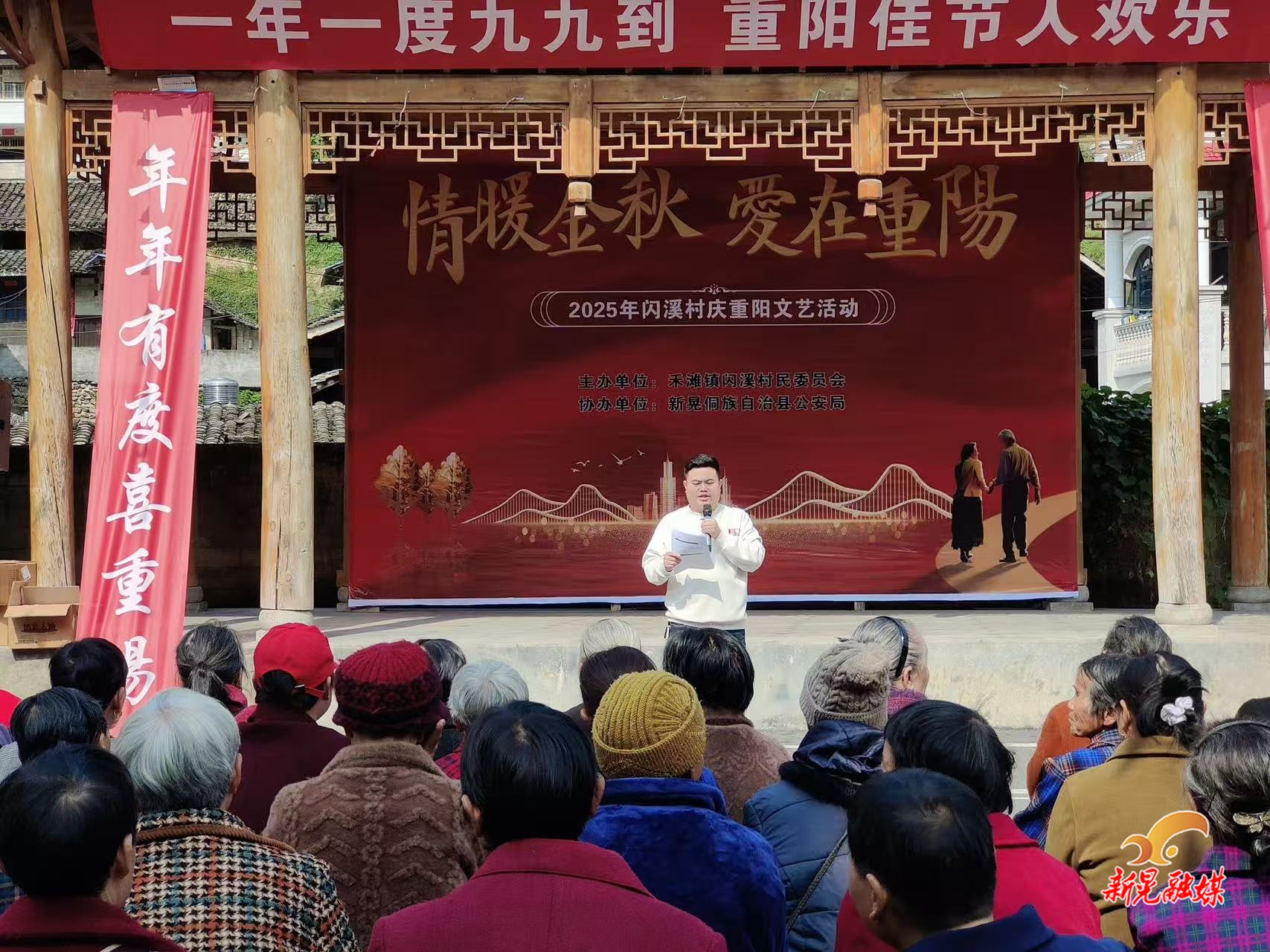 新晃融媒10月30日讯(通讯员:蒲美岑)金菊送清芬,秋阳暖高龄。为大力弘扬中华民族尊老、敬老、爱老、助老的传统美德,铸牢中华民族共同体意识,10月29日,禾滩镇闪溪村党总支部牵头组织了一场以“情暖金秋 爱在重阳”为主题的重阳节庆祝活动。活动将健康义诊、知识普及与文艺汇演有机结合,为全村老年人送上了暖心实在的“三重礼”,现场欢声笑语不断,暖意融融。