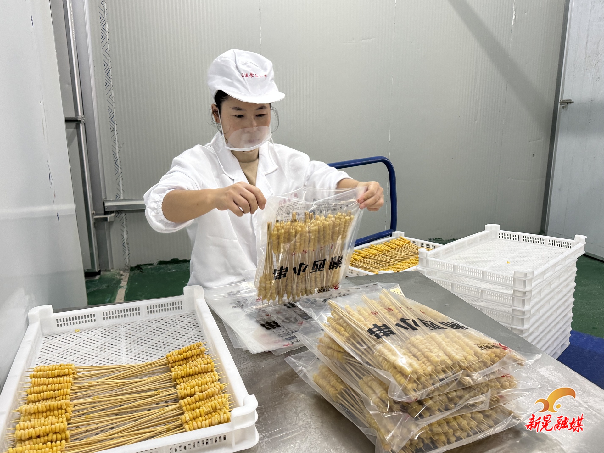 每天早上8点,50余名村民身着统一工装,准时走进村头的食品加工厂。串串、打包、分拣,在这条高效运转的生产线上,每天有近十万串产品从这里出发,通过冷链销往长沙、贵阳等城市的烧烤店、商超。