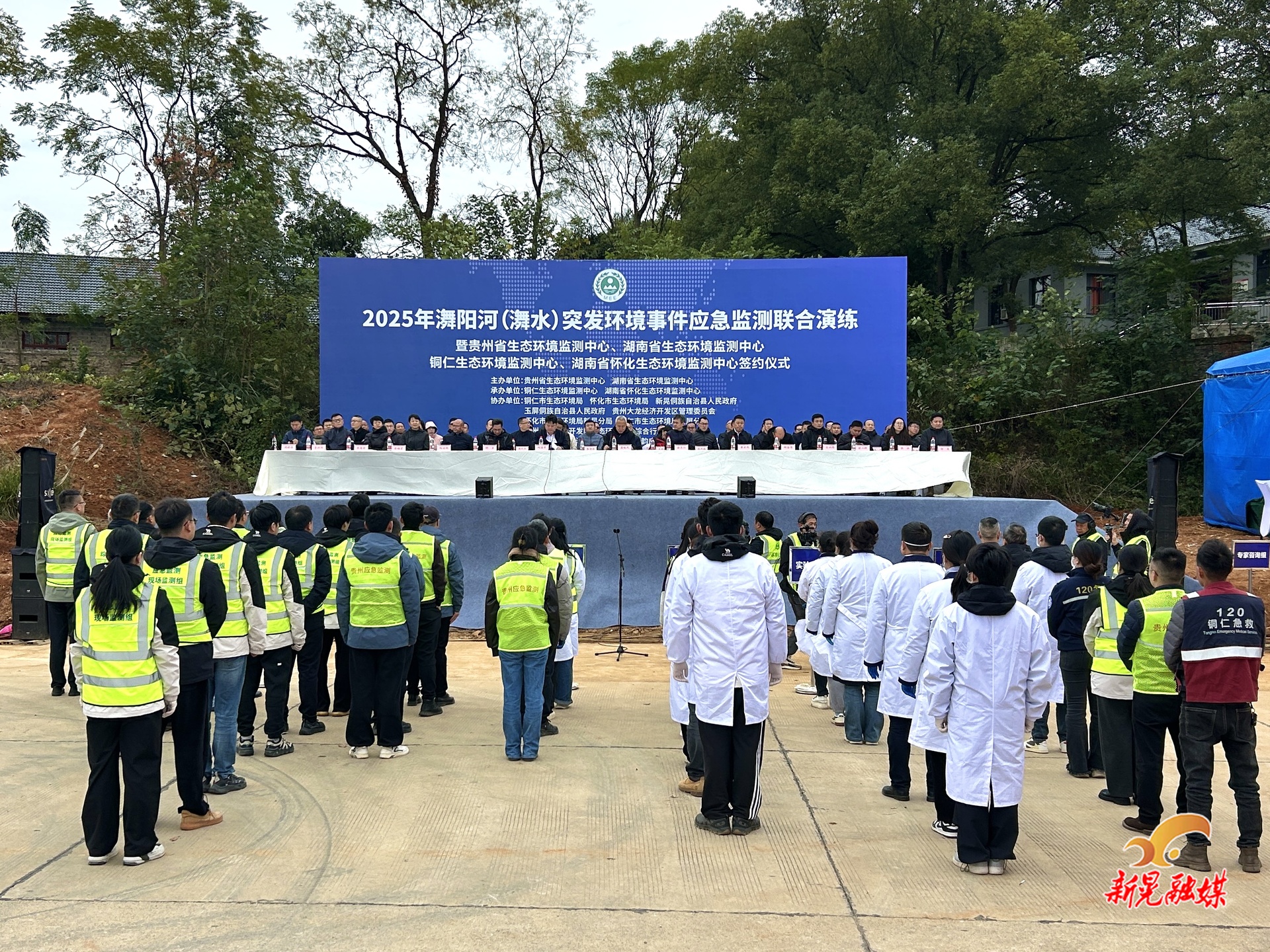 当天,贵州省与湖南省生态环境监测中心、铜仁市与怀化市生态环境监测中心分别签订突发环境事件应急监测联动及联防联控互助协议,标志着湘黔两省在相关领域合作迈向制度化新阶段,为守护㵲阳河(㵲水)生态安全筑牢制度根基,未来两省将依协议携手提升应急监测能力,共护绿水青山。