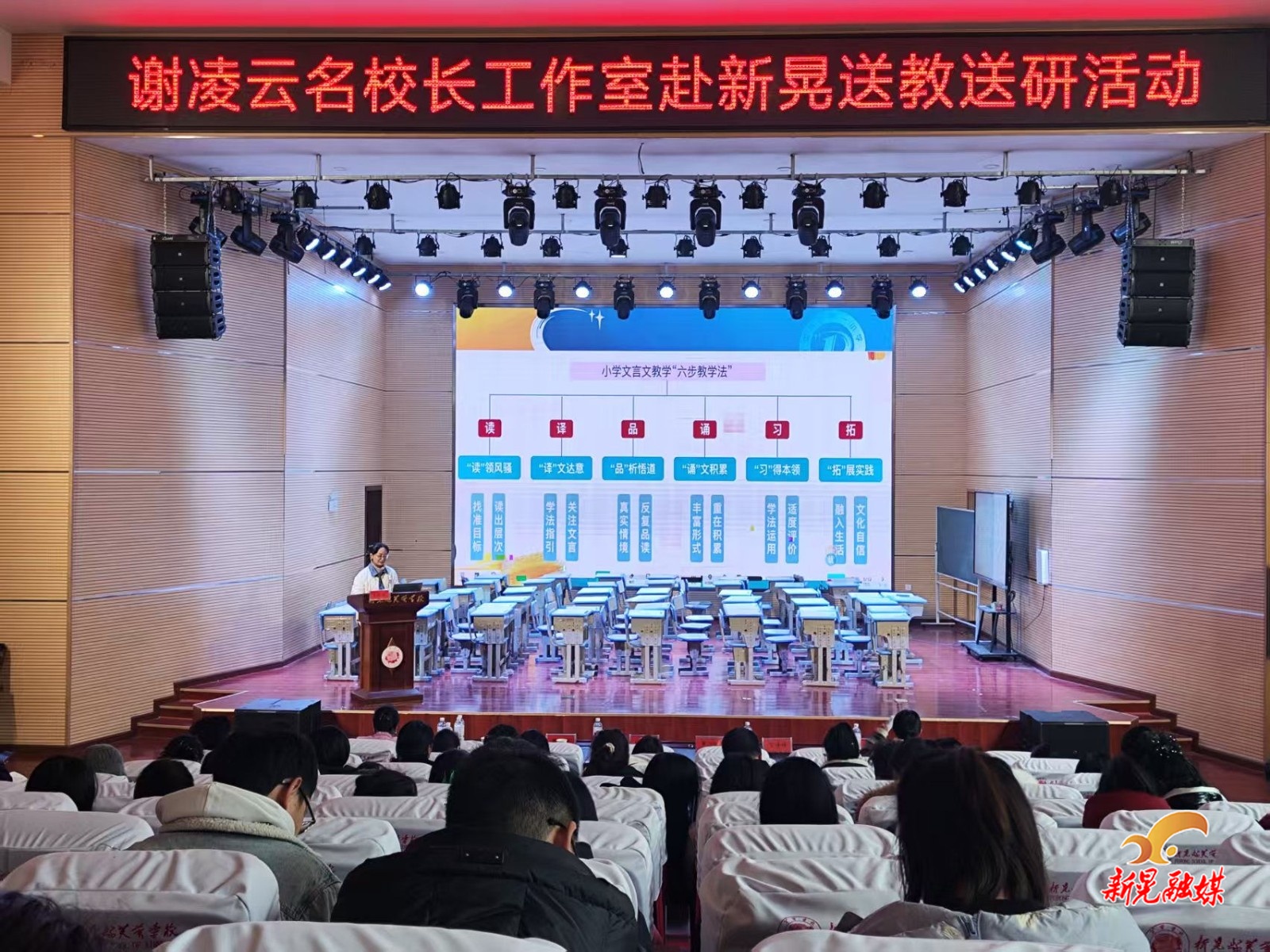新晃融媒12月9日讯(通讯员:张琼之)12月5日,谢凌云名校长工作室到新晃芙蓉学校开展送教送研活动。新晃教育局相关负责人、全县小学语文、数学骨干教师及教研员等100余人齐聚一堂,共同沉浸在这场教育理念与教学方法的交流盛宴中。