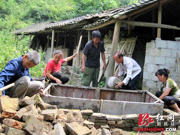 红网新晃站9月5日讯(杨玉钊) 5日上午,施工人员正在贡溪乡田家村钟下组村民钟德荣家中修建化粪池。
