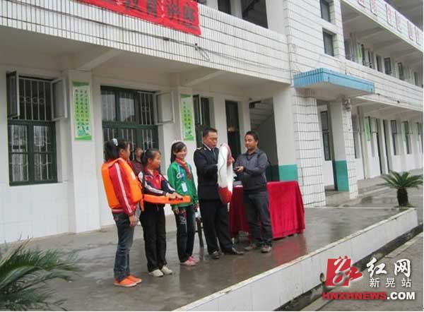 县海事处负责人教学生如何使用救生设备