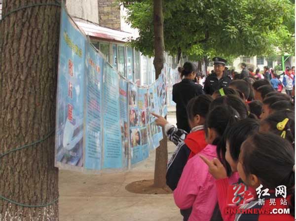 波洲中、小学生观看铁路安全宣传挂图
