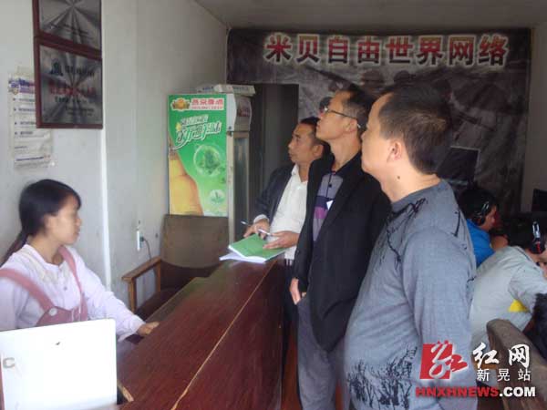 检查人员检查网吧安全隐患