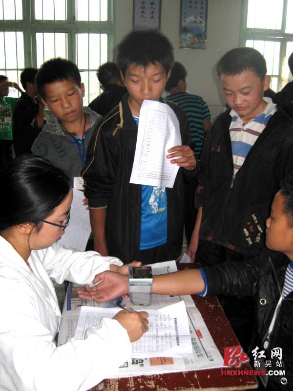红网新晃站9月26日讯 (杨玉钊) 26日上午,县教育局和卫生局组织医务人员前往贡溪中学免费为新生进行五官科、内外科常规体检。