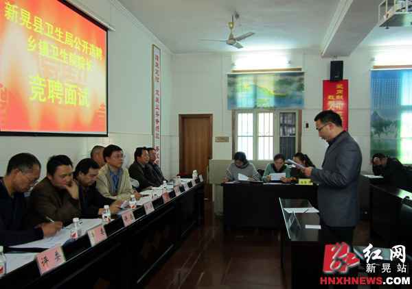 红网新晃站10月31日讯 (田忠波) 30日,我县卫生系统举行了首次乡镇卫生院院长公开竞聘会,目的是进一步深化基层医药卫生体制综合改革试点工作,引入竞争激励机制,强化基层医疗卫生队伍建设。