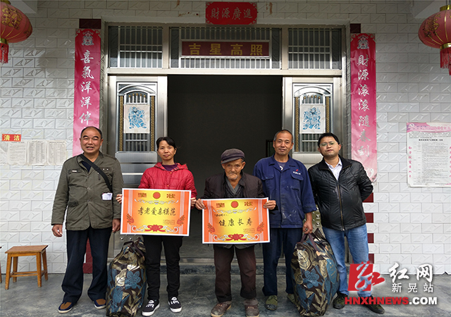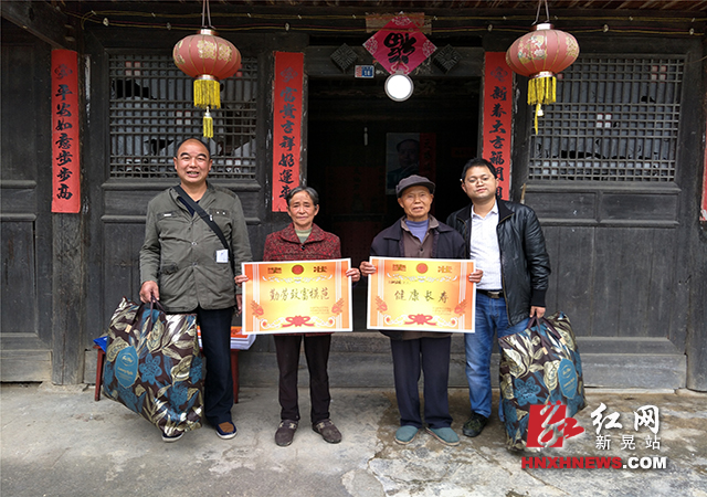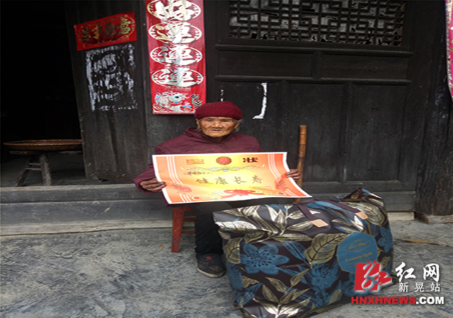 红网新晃站10月18日讯 (舒象彬 杨光兴) “伯伯,重阳节也是老人节,是你们老人家的节日,县教育局驻村扶贫工作队联合村支‘两委’特给您颁发‘长寿奖’,您今年93岁了,祝您身体健康、万事胜意、长命120岁!”