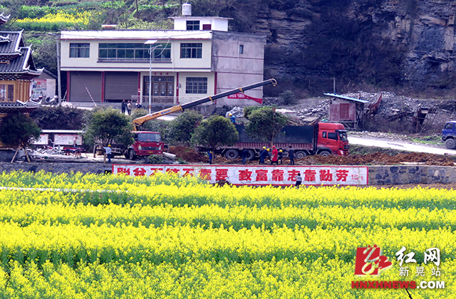 红网新晃站3月19日讯 ( 杨玉钊) 19日,贡溪镇贡溪村,民工在植树。当天,该村将移植来的60棵樟树、桂花、梅花、海棠树用吊车起吊“安上新家”。三月以来,贡溪镇大兴植树造林高潮,各村在边边角角空地、路边、荒坡移栽补植杉树等十多种树种,让家乡家园披上绿装,营造地绿,水清、气新、天蓝的绿色生态环境。