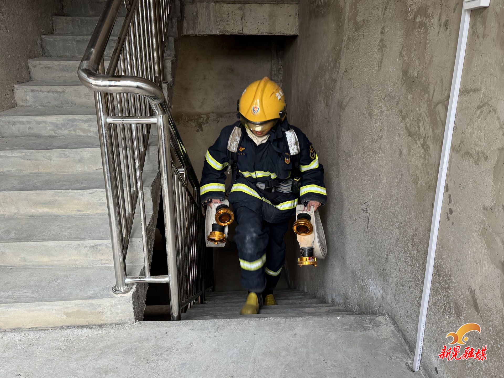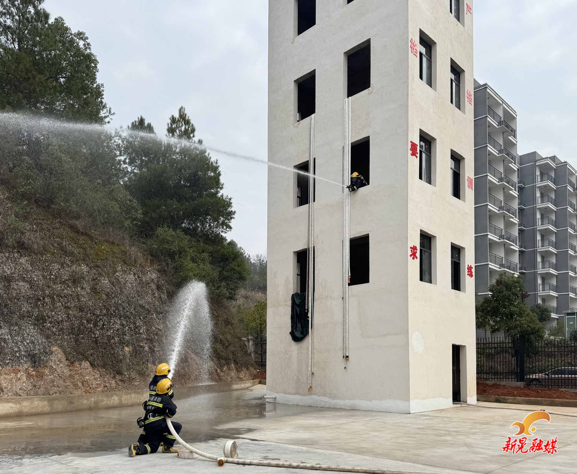 速度背后,是精准过硬的实战能力。针对园区高层厂房密集的产业特点,消防救援站量身定制训练方案,将高层火灾扑救作为训练重点。在高层火灾模拟演练现场,消防员需快速沿外墙垂直铺设供水干线,搭建可靠供水通道,同时依托建筑结构在外围布设水枪阵地,对模拟火点实施精准打击,全力锤炼“复杂环境下攻得进、灭得了、打得赢”的实战本领。
