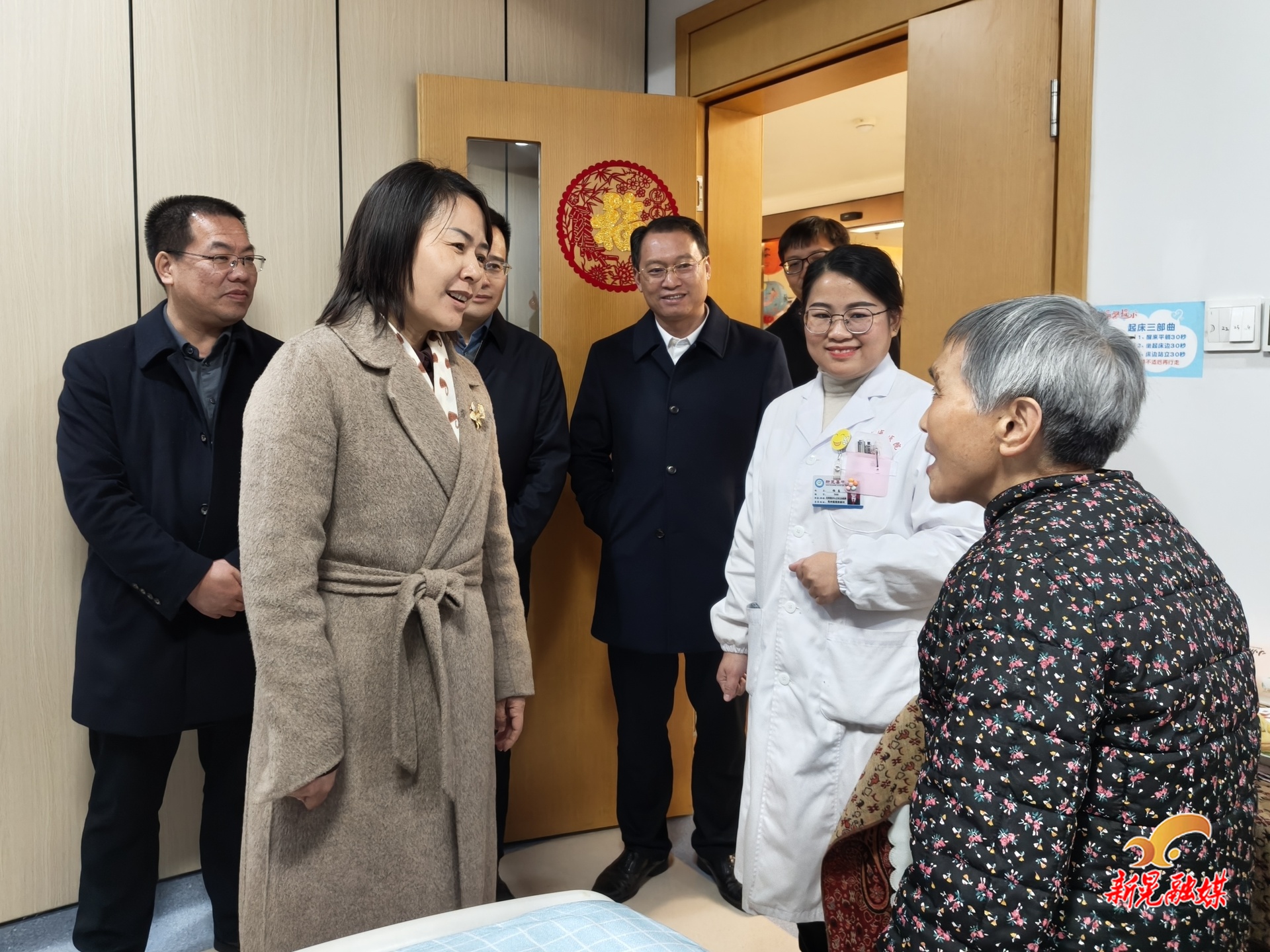 来到县中医医院医养服务中心,向汝莲实地察看中心的功能布局、硬件设施以及人员构成,亲切看望入住老人,详细询问老人的身体状况以及日常起居照护情况。她对中心打造的中医药特色“医养结合”新模式的探索实践与取得的成效给予充分肯定。她强调,要结合新晃实际,深耕特色医养发展路径,打造差异化发展优势,持续优化服务供给。要持续配强康复、护理等专业力量,强化服务人员爱心、耐心素养培育,为人民群众提供更优质、高效的医疗卫生与养老服务,切实提升百姓健康获得感与幸福感。