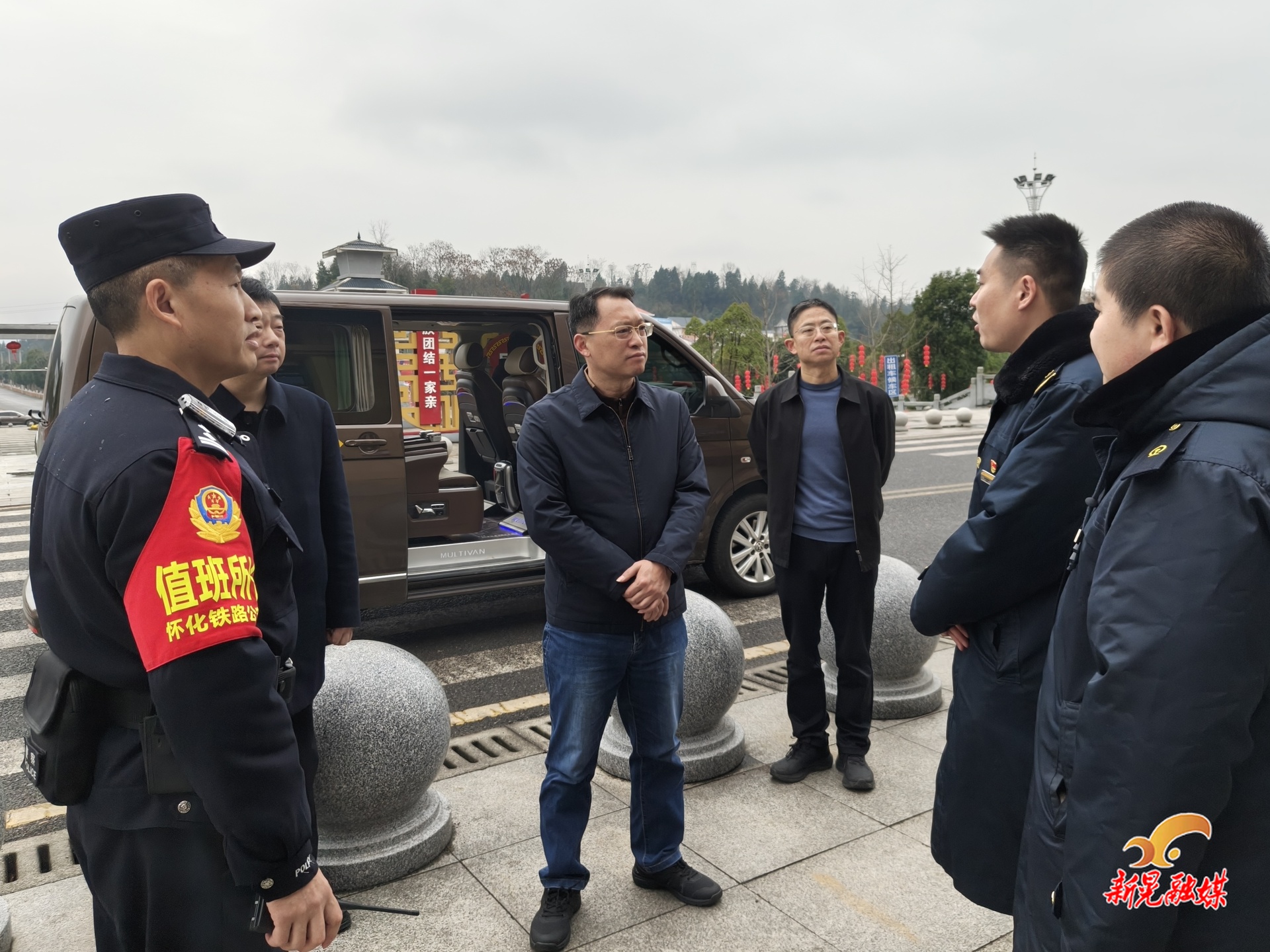 在高铁新晃西站、高铁新晃西站派出所,杨鹏与高铁站工作人员和派出所民警亲切交流,仔细询问春运期间客流变化、安保措施落实及便民服务情况。他对大家过去一年为保障高铁运行秩序、维护社会治安稳定所付出的努力表示感谢,并叮嘱值班人员要用心用情做好服务保障,为往来旅客打造安全、有序、舒心的出行环境。