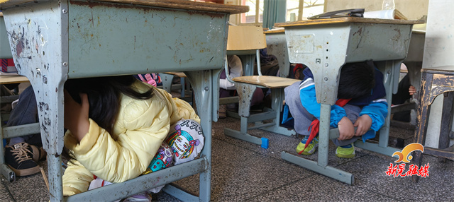 "嘟——嘟——嘟——",随着消防警报声急促响起,演练正式拉开序幕。教室内,学生们迅速抱头、弯腰低姿,用衣物捂住口鼻,按照预定路线有序撤离;楼梯口,教师在关键点位引导,提醒学生不推挤、不慌张,快速通过楼道;操场上,各班到达指定区域后,班主任立即清点人数,向现场指挥汇报撤离情况,整个过程紧张有序、高效规范。演练中,还设置了地震避险环节,学生们迅速躲到课桌下方,双手护头,掌握紧急避险技巧。