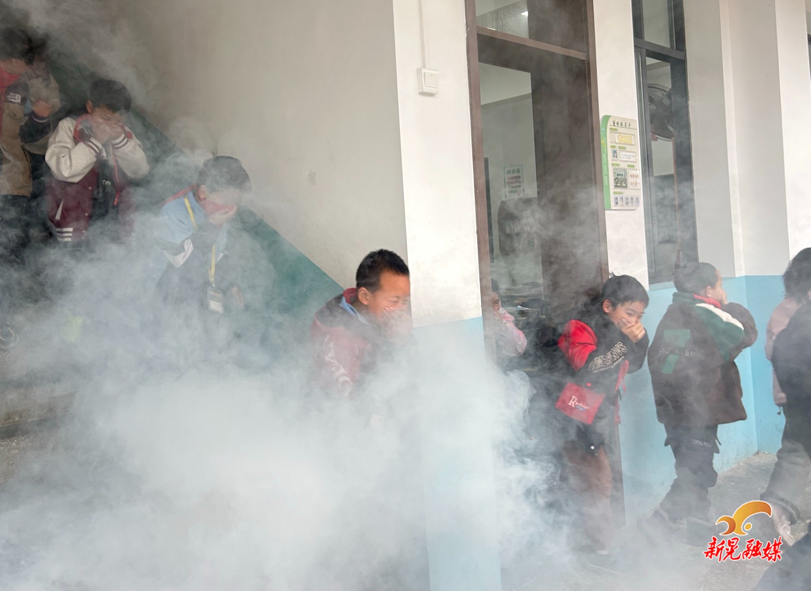 警报声响起,各楼层引导员迅速到岗,在楼梯口、转角等关键位置值守疏导。学生们在班主任的带领下,用湿毛巾捂住口鼻、弯腰低姿,沿预定路线快速有序撤离至操场安全区域,全程严守纪律,无推挤喧哗。
