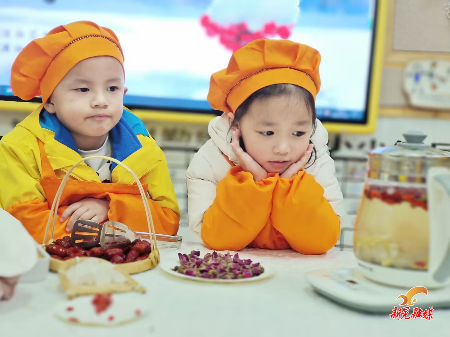 活动中,老师们通过绘本讲解、动画展示等方式,带领孩子们认识小雪节气,并了解“天气变冷、初雪将临”的节气特征,以及“吃糍粑、喝暖饮”的传统习俗,同时讲解了与红糖、马蹄、桂圆等食材相关的养生故事。