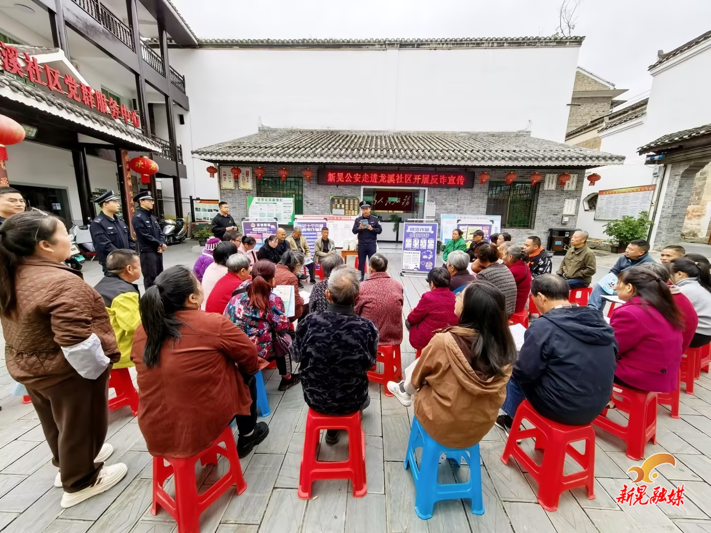 在基层治理中,新晃公安联合乡镇、社区(村)党组织,充分发挥党员反诈宣传员与网格员、楼栋长的联动作用,针对独居老人、留守妇女等易受骗群体逐户上门普及防骗知识;线上则借助社区微信群、村民议事群等载体,定期推送反诈短视频和预警提示,形成“线上预警提示 + 线下上门排查”的立体化联动宣传格局。此外,该局还利用抖音、微信等新媒体平台发布反诈内容,鼓励群众成为反诈宣传志愿者,通过“小手拉大手”“邻里互助”传播反诈知识,营造全民反诈氛围。