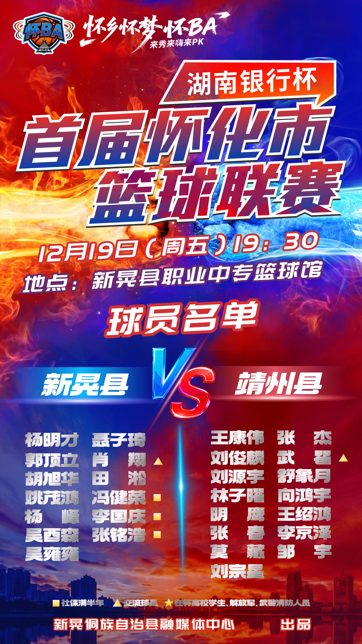 强敌来袭,主场亮剑!12月19日19:30,新晃vs靖州,不见不散!