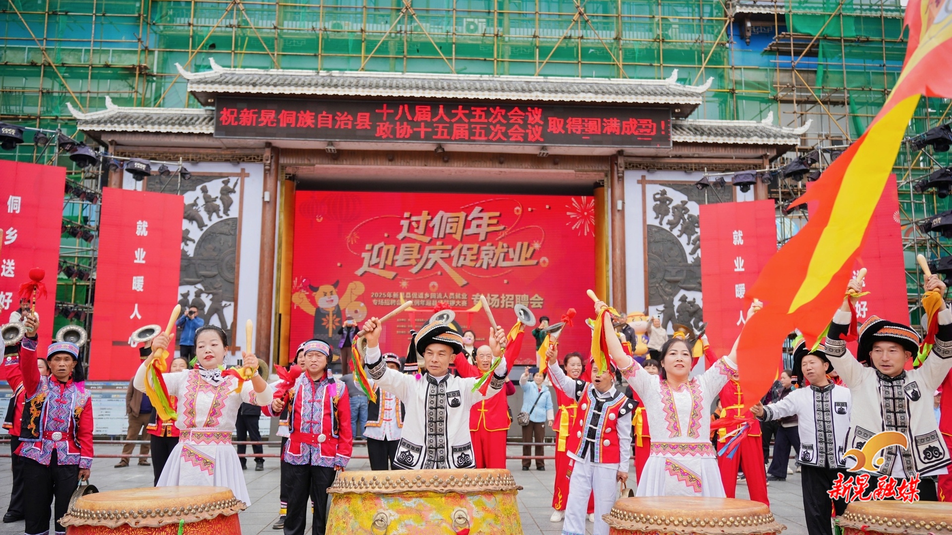 新晃融媒12月21日讯(记者:甘胜男)12月20日,2025年新晃促返乡回流人员就业专场招聘会暨过侗年迎县庆促就业鼟锣大赛在夜郎广场举行。活动将侗年节庆与就业服务深度融合,旨在以文化认同破解返乡人员的“心理回流”难题。县委常委、县委宣传部部长夏崇源出席并宣布鼟锣大赛开锣。