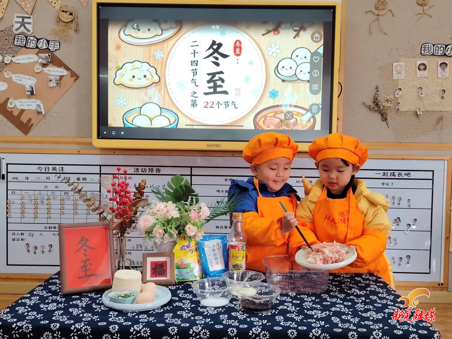 新晃融媒12月20日讯(通讯员:关明)为让幼儿感受冬至节气的民俗魅力,体会冬日里的温暖氛围,12月19日,新晃幼儿园中山路分园小班年级组开展了一场集民俗体验、美食制作、合作分享于一体的特色活动,让幼儿在动手实践中感知传统、收获乐趣。