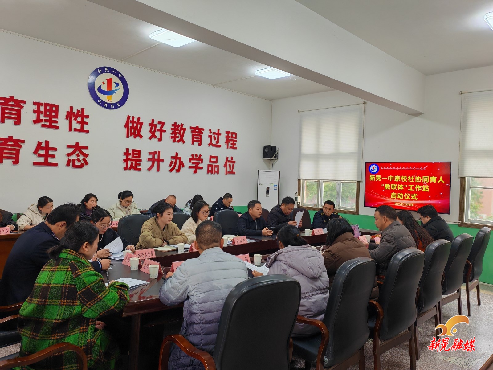 新晃融媒12月9日讯(通讯员:杨凌云)近日,新晃一中举行家校社协同育人 “教联体” 工作站启动仪式。新晃县委宣传部、县教育局、县公安局、县人民检察院、县司法局、县城管局、晃州镇政府等单位相关负责人,以及社区、志愿者协会负责人,家长代表、教师代表参加。